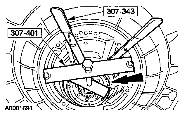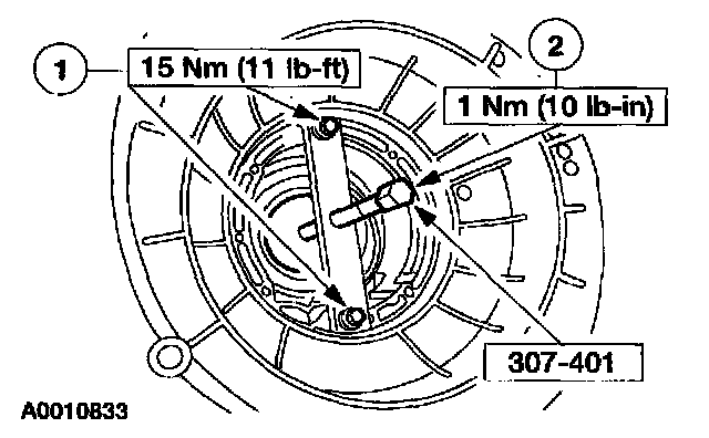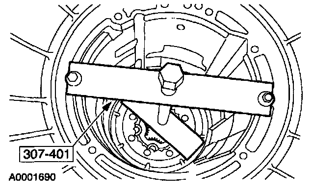 1 Install the special tool and the bolts using the two pump screw locations at approximately 6 and 12 o'clock positions.