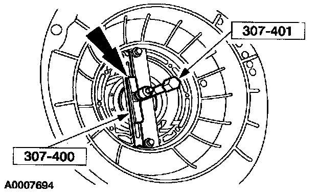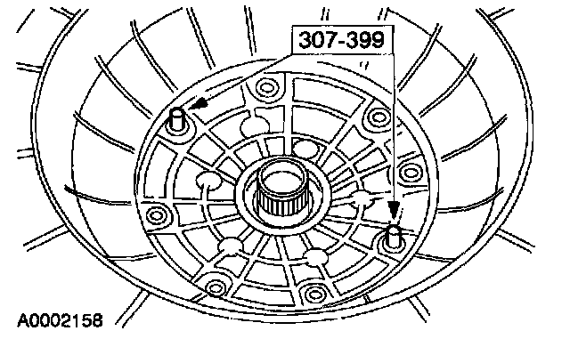 1 Install the special tool and the bolts, using the two pump screw locations at approximately 6 and 12 o'clock positions.