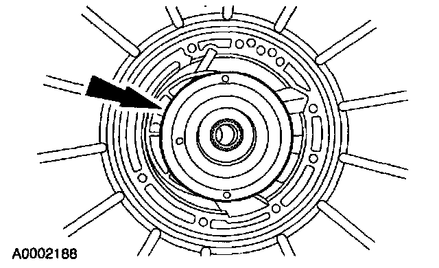 101. CAUTION: The intermediate clutch fluid inlet tube seal and spring must be correctly seated in the case. Failure to correctly seat the inlet tube seal and spring will cause an internal fluid leak and transmission damage.
