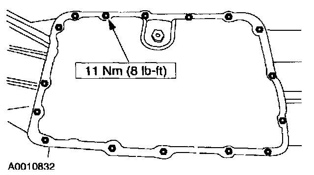 115. NOTE: The transmission fluid pan gasket is reusable. Clean and inspect for damage. If not damaged, the gasket should be reused.
