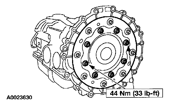 120. Using the special tools, install the output shaft flange.
