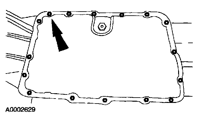 14. NOTE: The transmission fluid pan gasket is reusable. Clean and inspect the gasket for damage. If not damaged, the gasket should be reused.