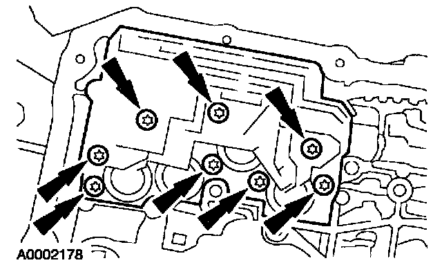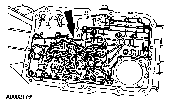 19. Remove the valve body cover plate and gasket. Discard the gasket.