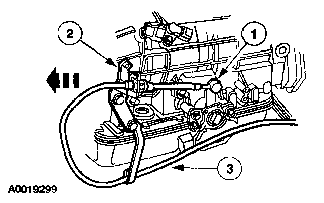 2 Depress the tab and slide the shift cable out of the shift cable bracket.