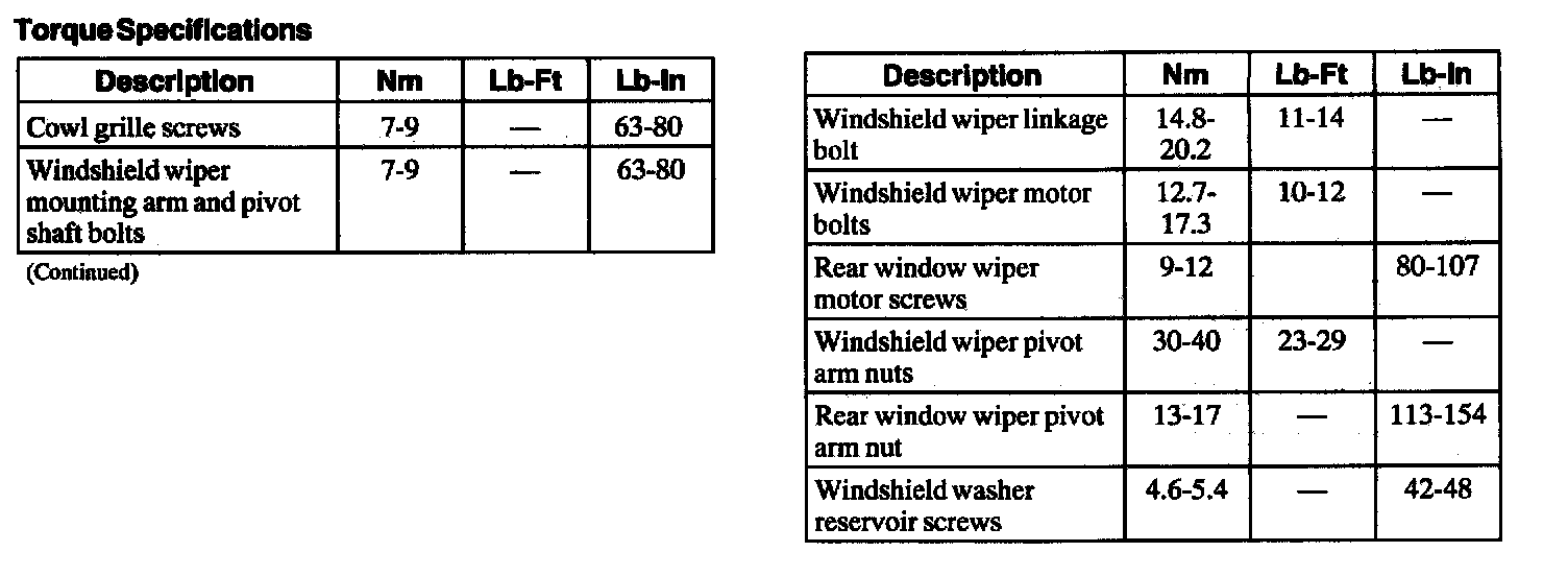 Torque Specifications:
