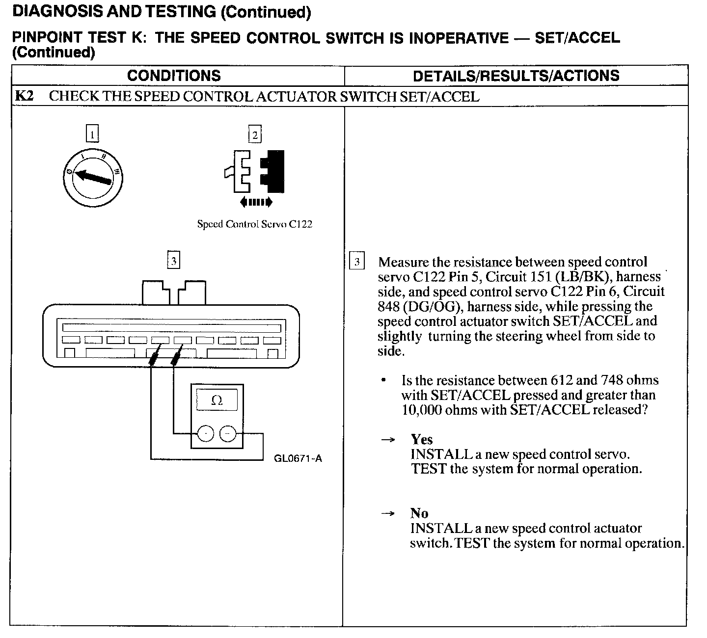 Test K: Speed Control Switch Is Inoperative - Set/Accel