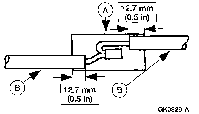 5. Position the (A) heat shrink tube over the (B) wire repair.