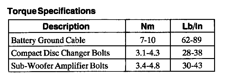 Torque Specifications: