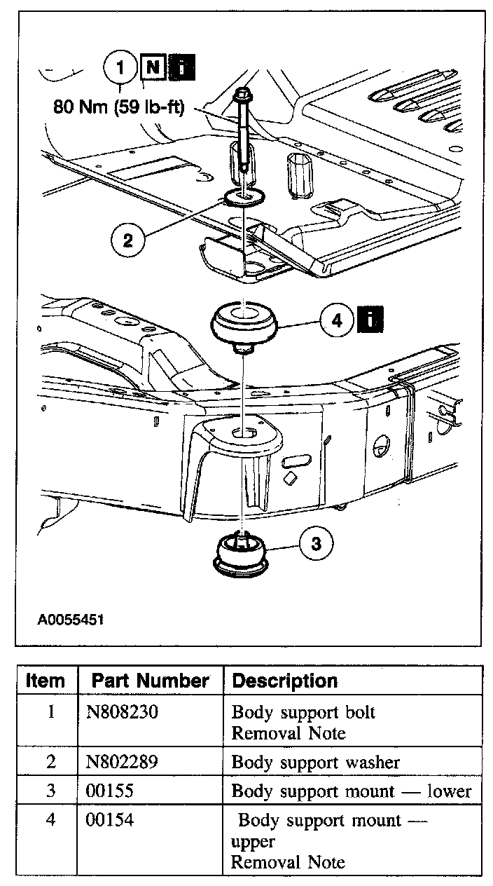 1. CAUTION: When removing upper body mounts, all other body mount support bolts must be loose before raising the vehicle to prevent damage from occurring to the vehicle.