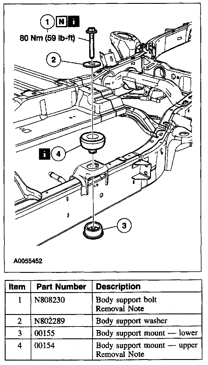 - Do not reuse body support mounting fasteners, New fasteners must be installed for each fastener that has been removed or loosened.