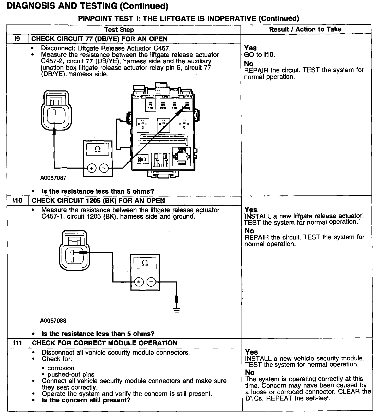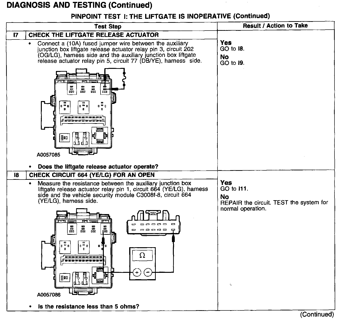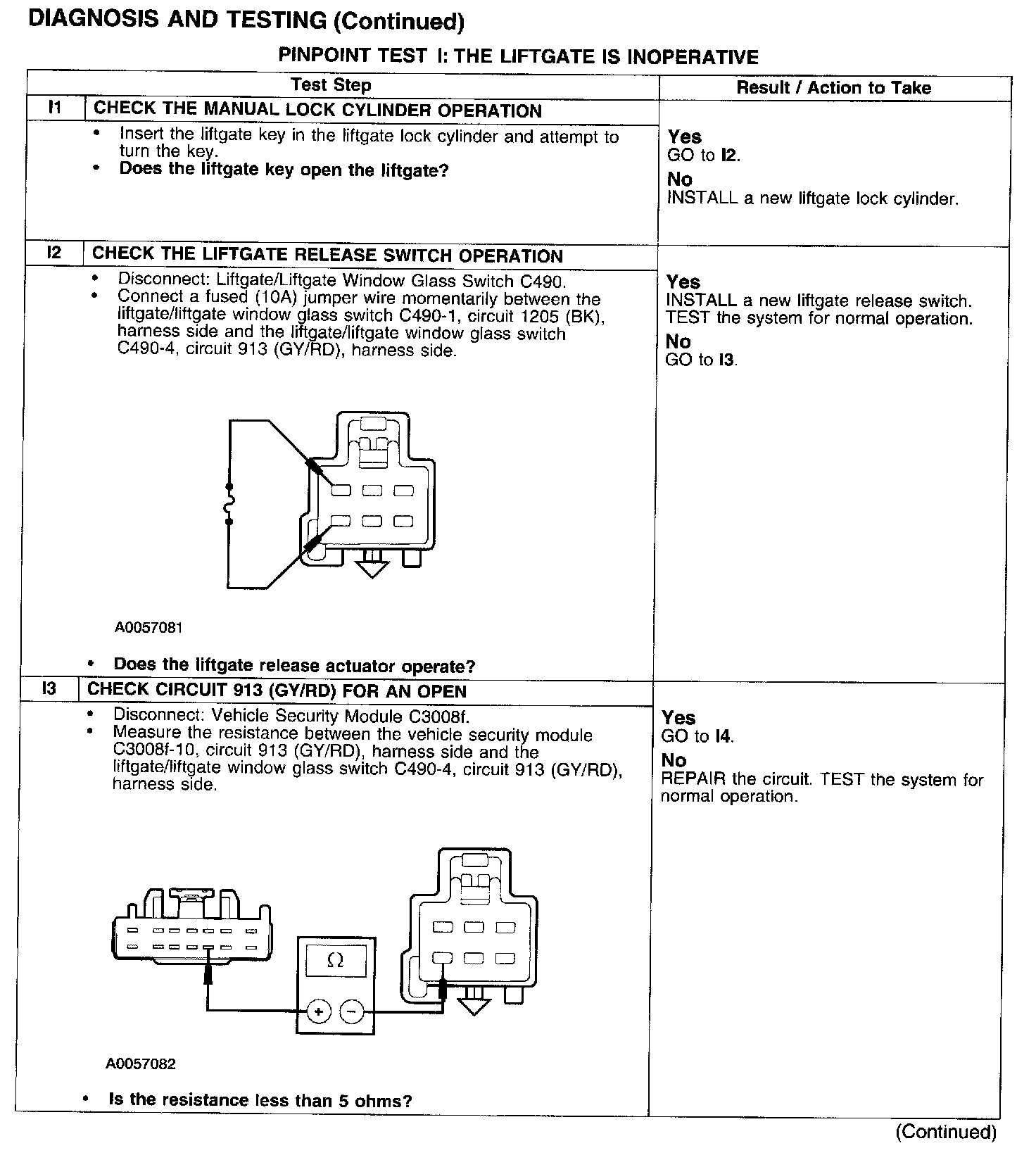 PINPOINT TEST I: THE LIFTGATE IS INOPERATIVETest I1-I3: