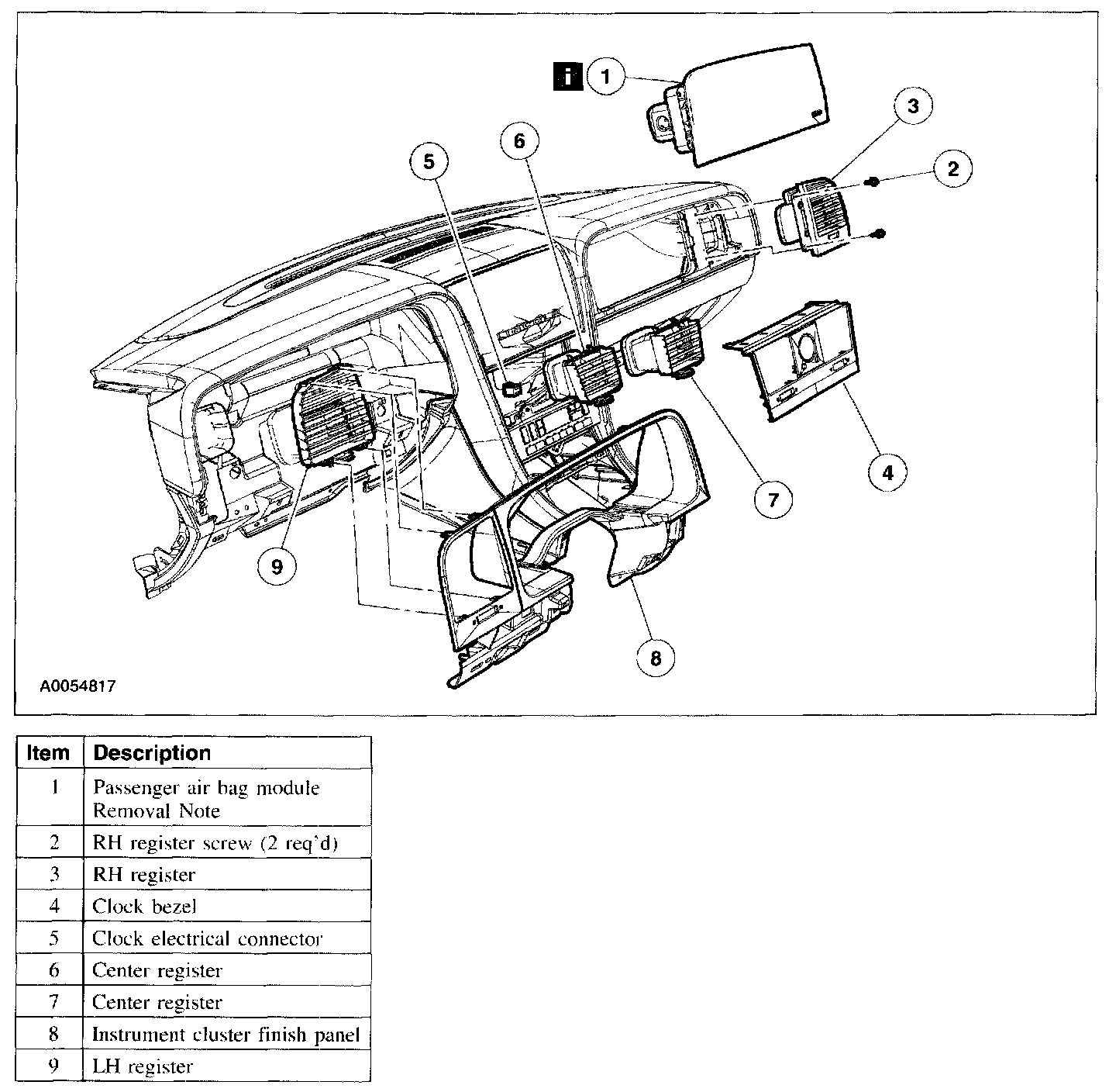 Item 1: Passenger Air Bag Module Removal Note
