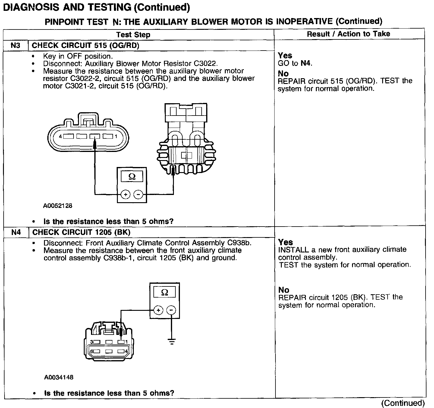 PINPOINT TEST N: THE AUXILIARY BLOWER MOTOR IS INOPERATIVETest N1-N2: