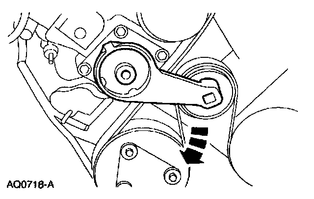 1. Rotate the belt tensioner clockwise and remove the accessory drive belt.