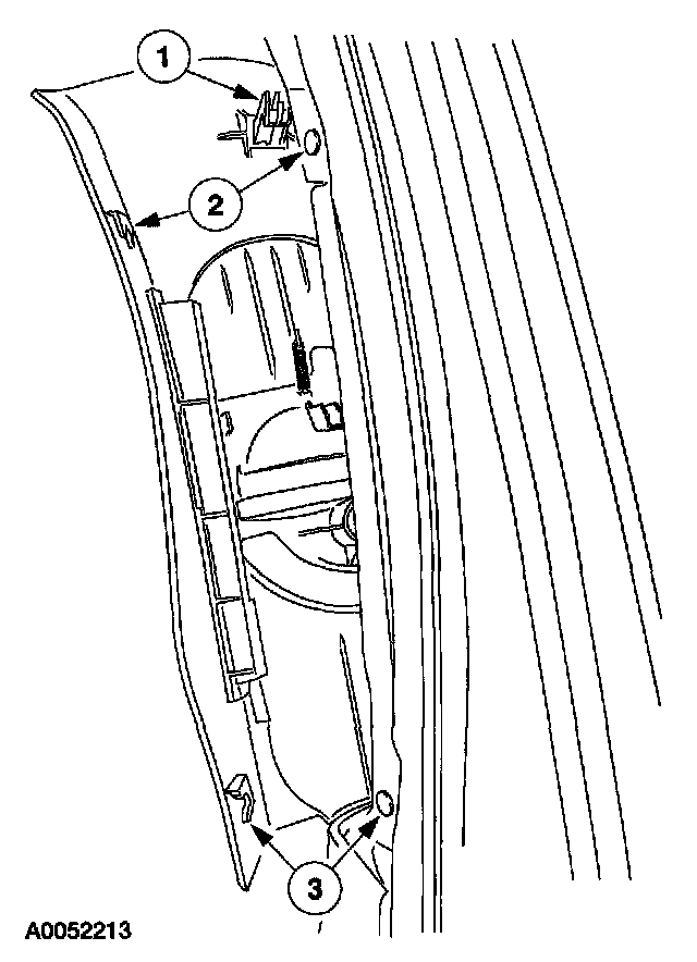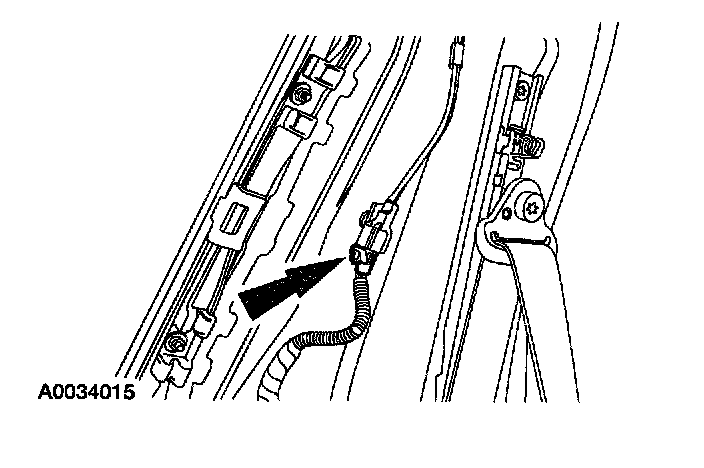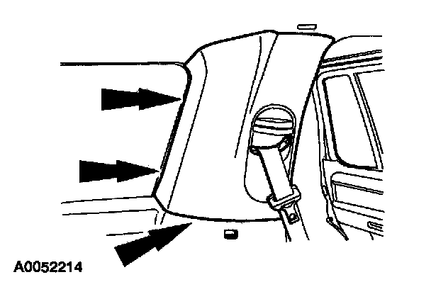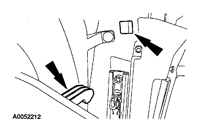 - The safety belt shoulder height adjuster and the C-pillar trim panel sliding insert must be at their most upward position of travel to aid installation.
