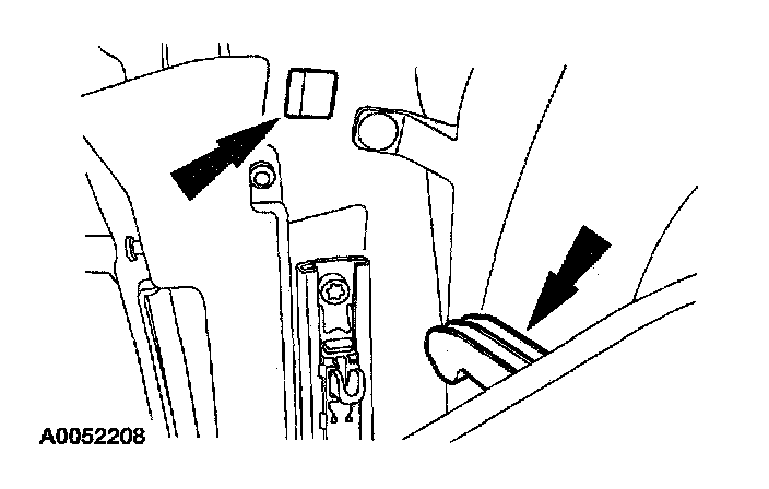 - Make sure the safety belt shoulder height adjuster and the C-pillar panel sliding insert are at their most upward position of travel to aid installation.