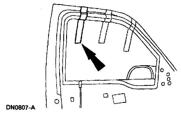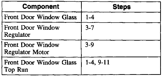 2. If removing the front door window glass, pull glass out through the top inboard side of the door.