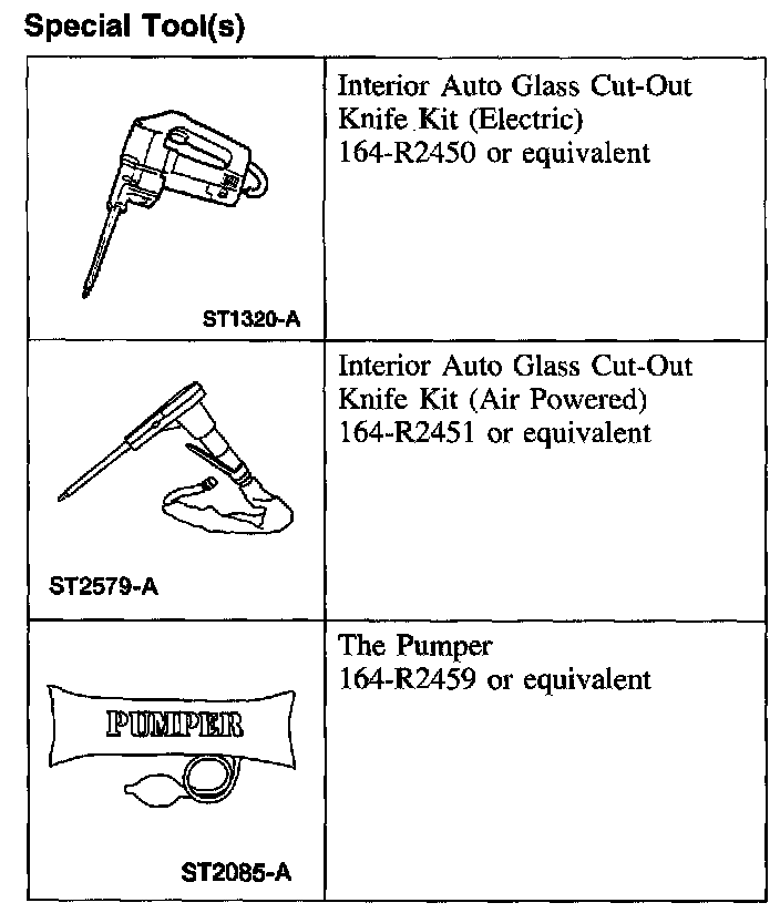 WARNING: To prevent glass splinters from entering the eyes or cutting hands, wear safety glasses and heavy gloves when cutting and removing the glass from the vehicle.