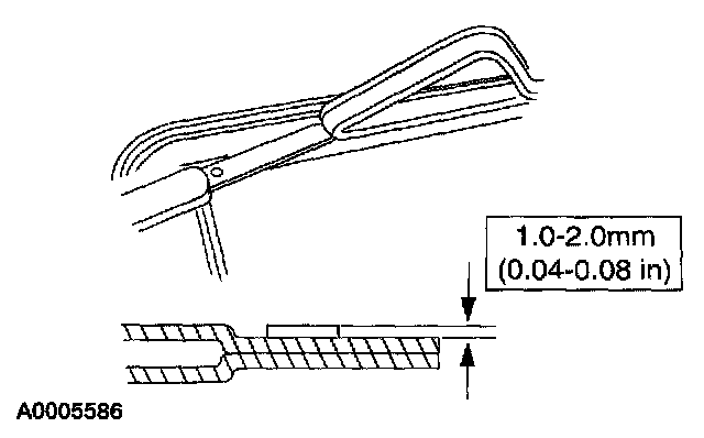 2. Trim the remaining urethane adhesive on the pinch weld to within specification. The surface should be smooth and free of cuts and contamination.