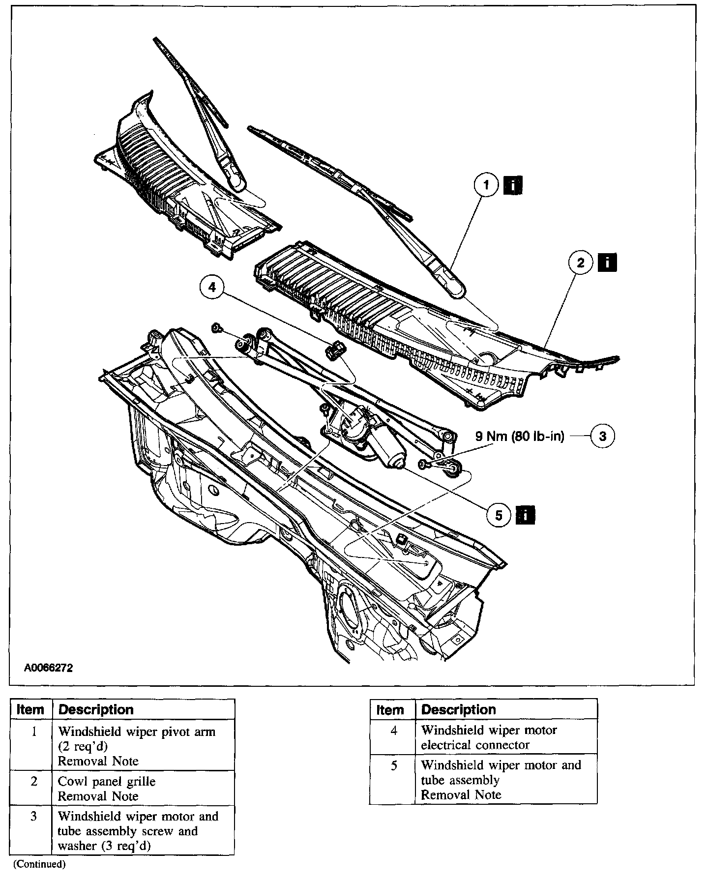 Item 5: Windshield Wiper Motor and Tube Assembly Removal Note