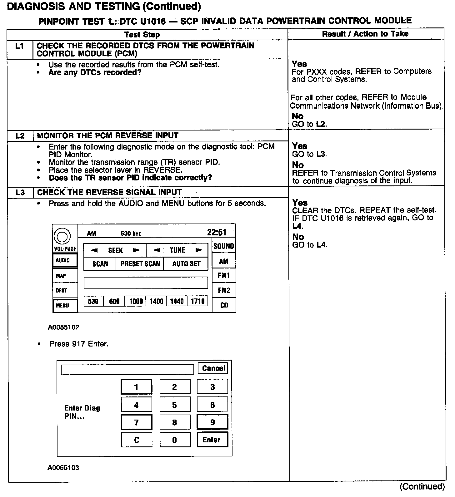 PINPOINT TEST L: DTC U1016 - SCP INVALID DATA POWERTRAIN CONTROL MODULETest L1-L3: