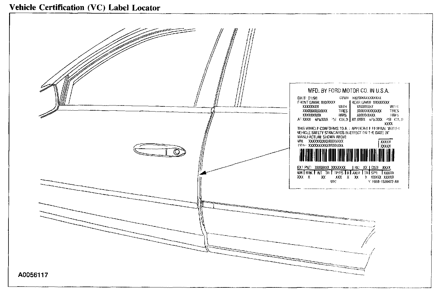 Powertrain calibration information is printed in the lower right corner of the vehicle certification (VC) label. Only base calibration information is printed. Revision levels will not appear, however, they can be found in On Line Automotive Service Information System (OASIS). For the current model year, Ford Motor Company is using three different protocols which describe powertrain base calibration. These protocols are designed to provide worldwide standardization for vehicle calibration. If the electronic calibration strategy was introduced in 1998 and carried into the current model year, Protocol 1 will be used. Refer to Protocol 1. If the electronic calibration strategy was introduced in 1999 and carried into the current model year, Protocol 2 will be used. Refer to Protocol 2. For electronic calibration strategy introduced in 2000 and beyond, Protocol 3 will be used. Refer to Protocol 3.