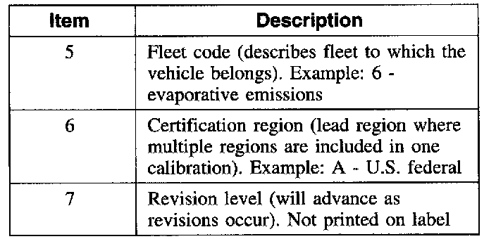 NOTE: Powertrain calibration information is limited to a maximum of five characters per line on the vehicle certification (VC) label. Because of this, calibration identification consisting of more than five characters will wrap to the second line on the VC label.