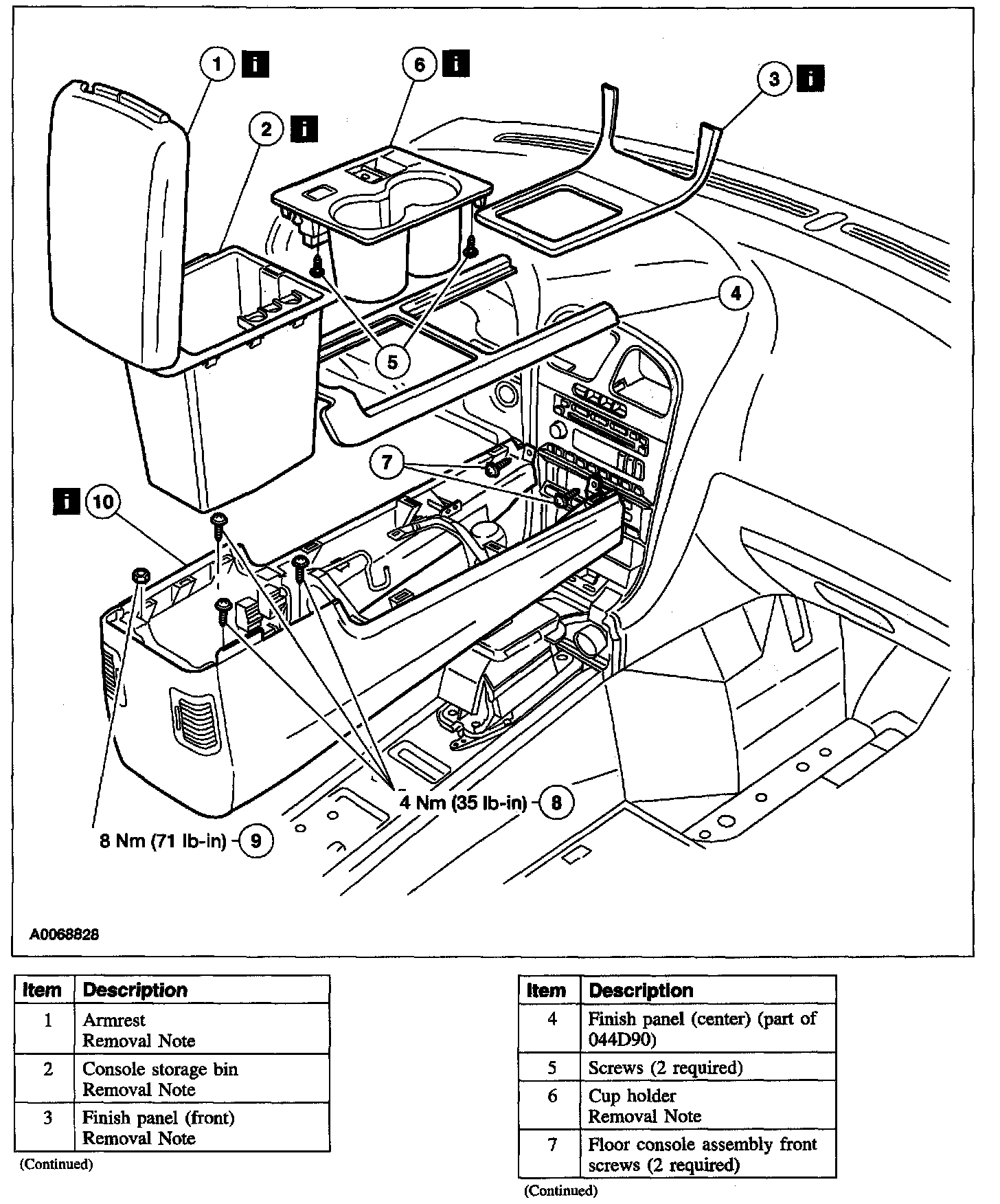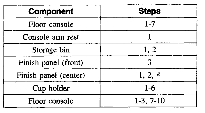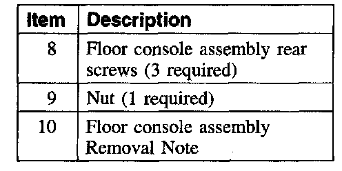 Item 10: Floor Console Assembly Removal Note