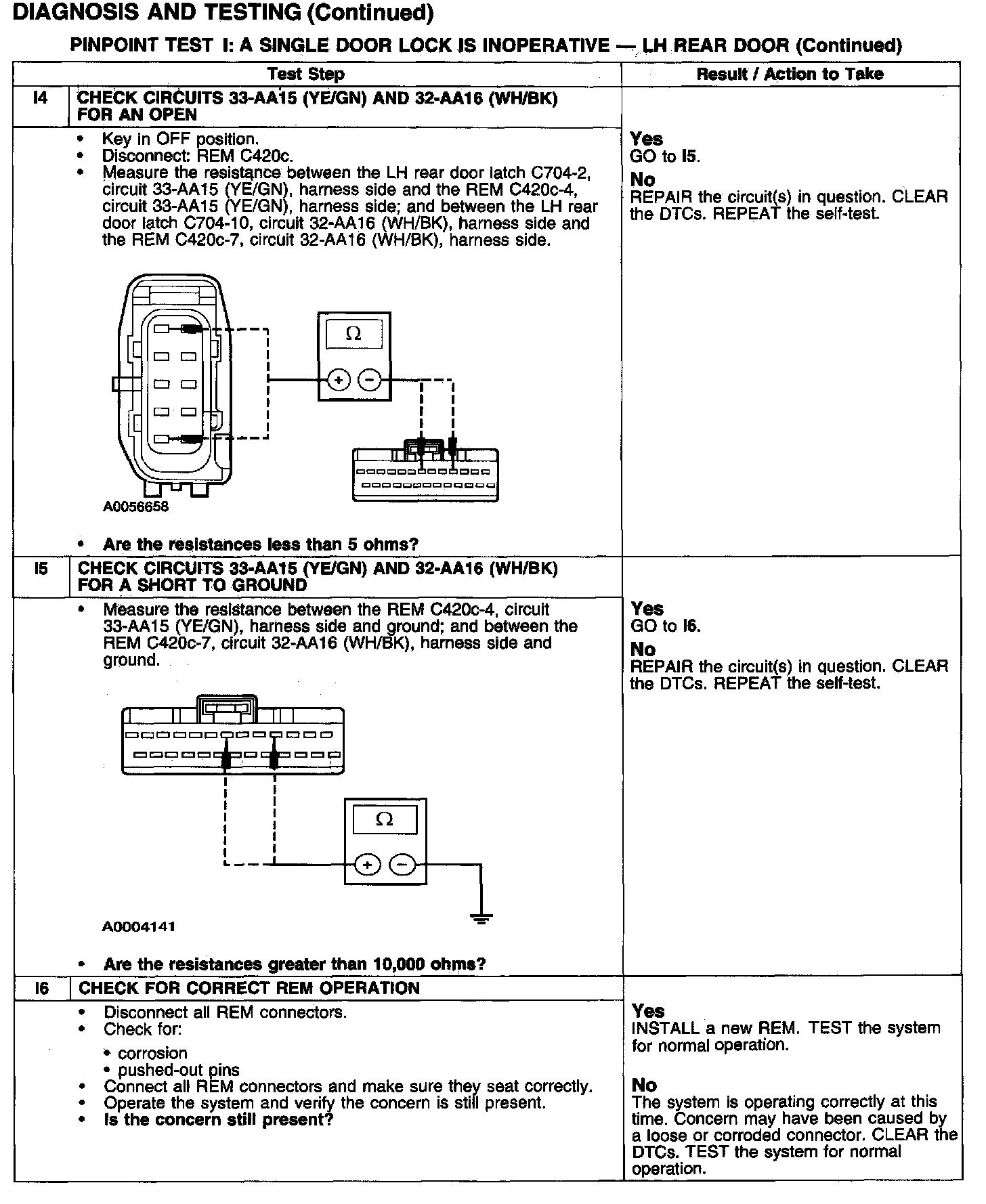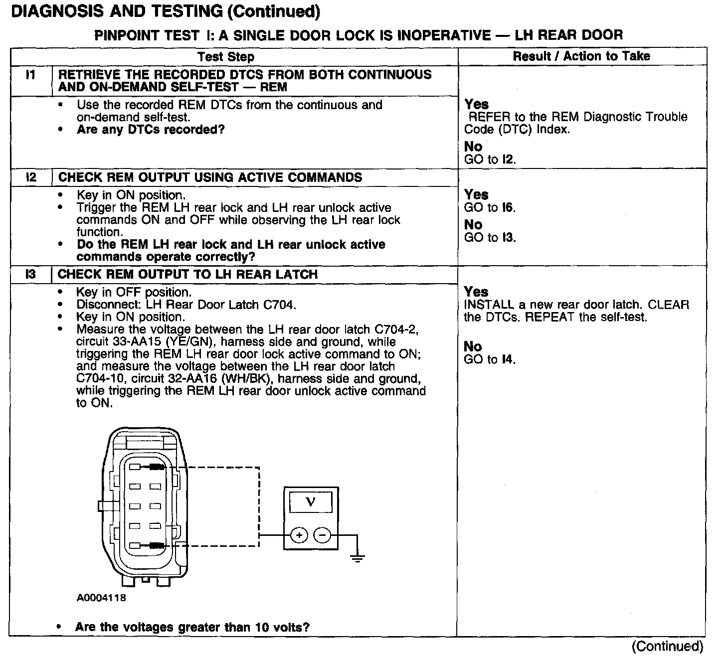 PINPOINT TEST I: A SINGLE DOOR LOCK IS INOPERATIVE - LH REAR DOORTest I1-I3: