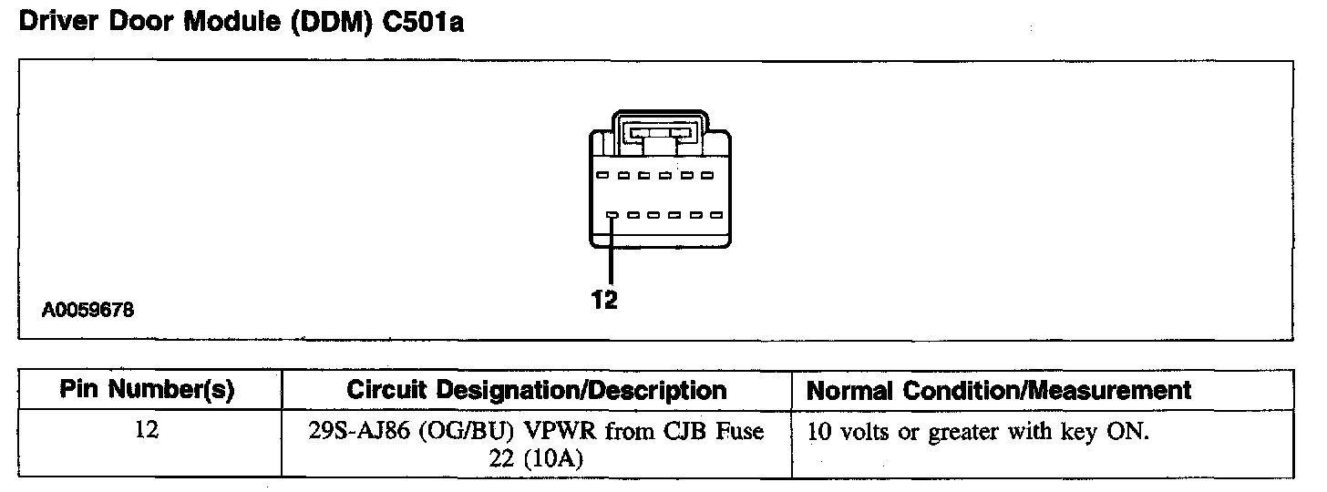 Driver Door Module (DDM) C501a:
