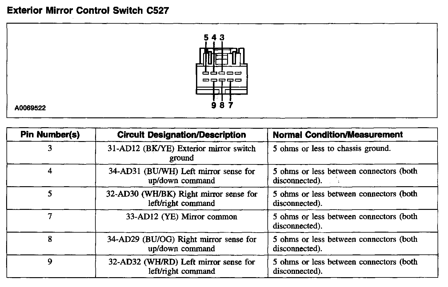 Exterior Mirror Control Switch C527: