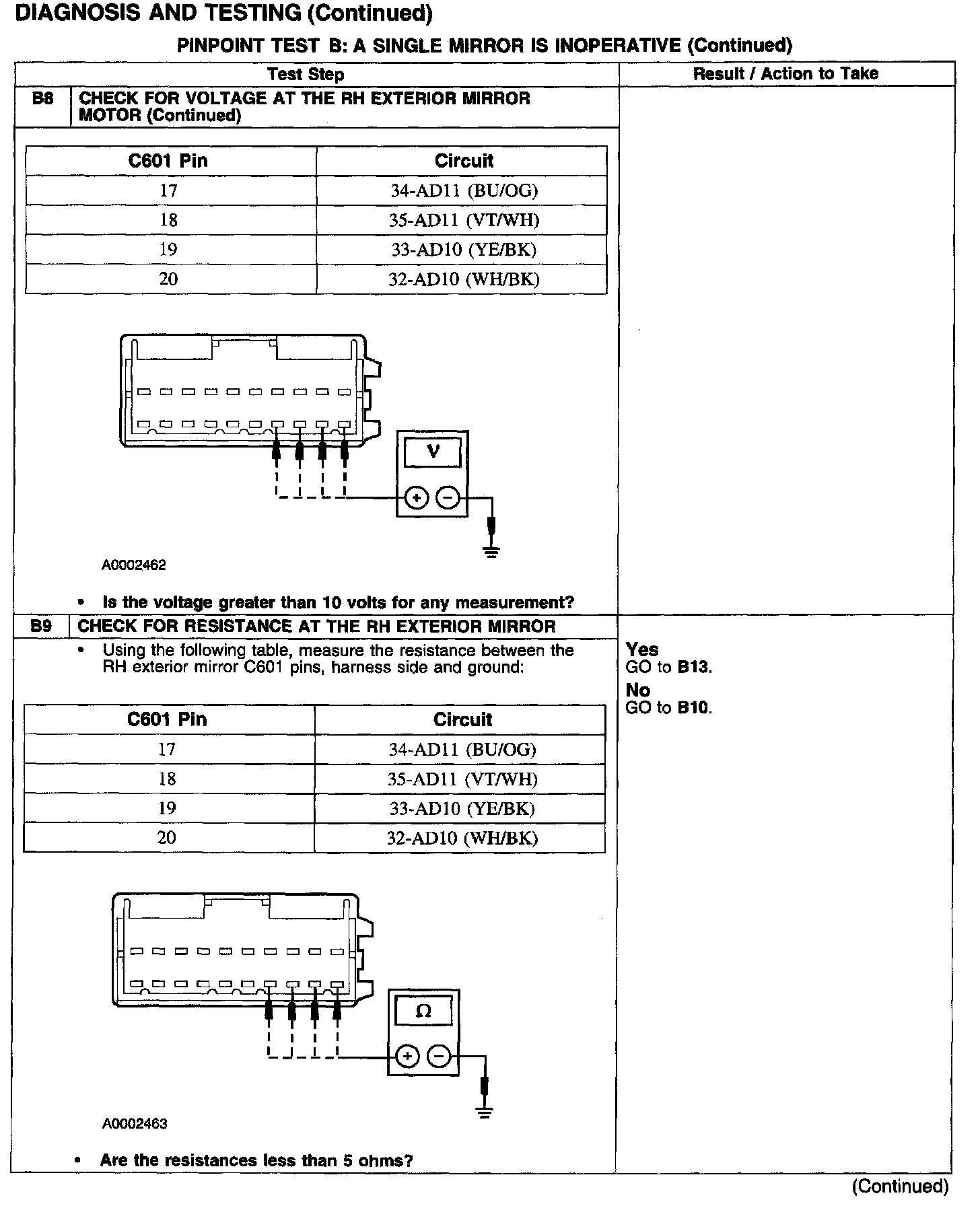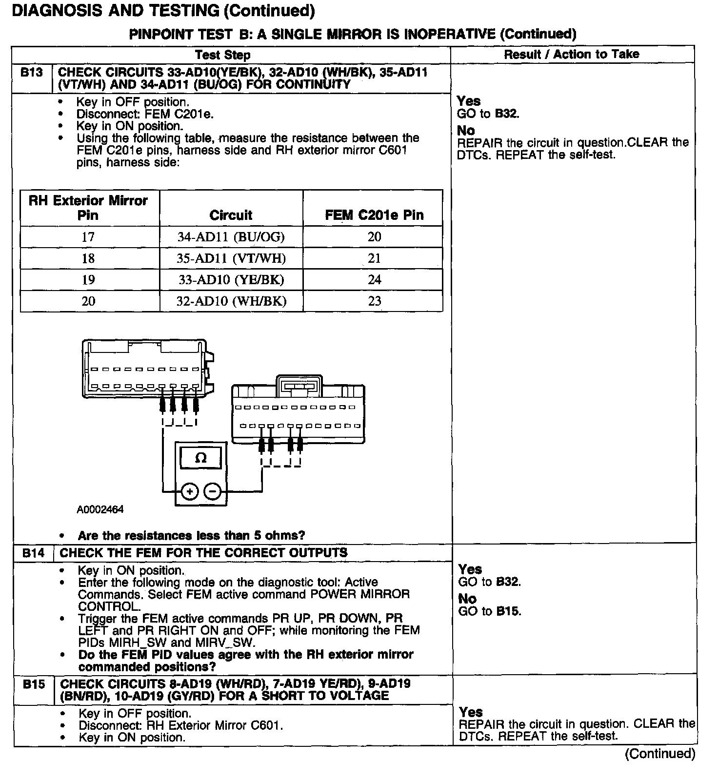 PINPOINT TEST B: A SINGLE MIRROR IS INOPERATIVETest B1-B4: