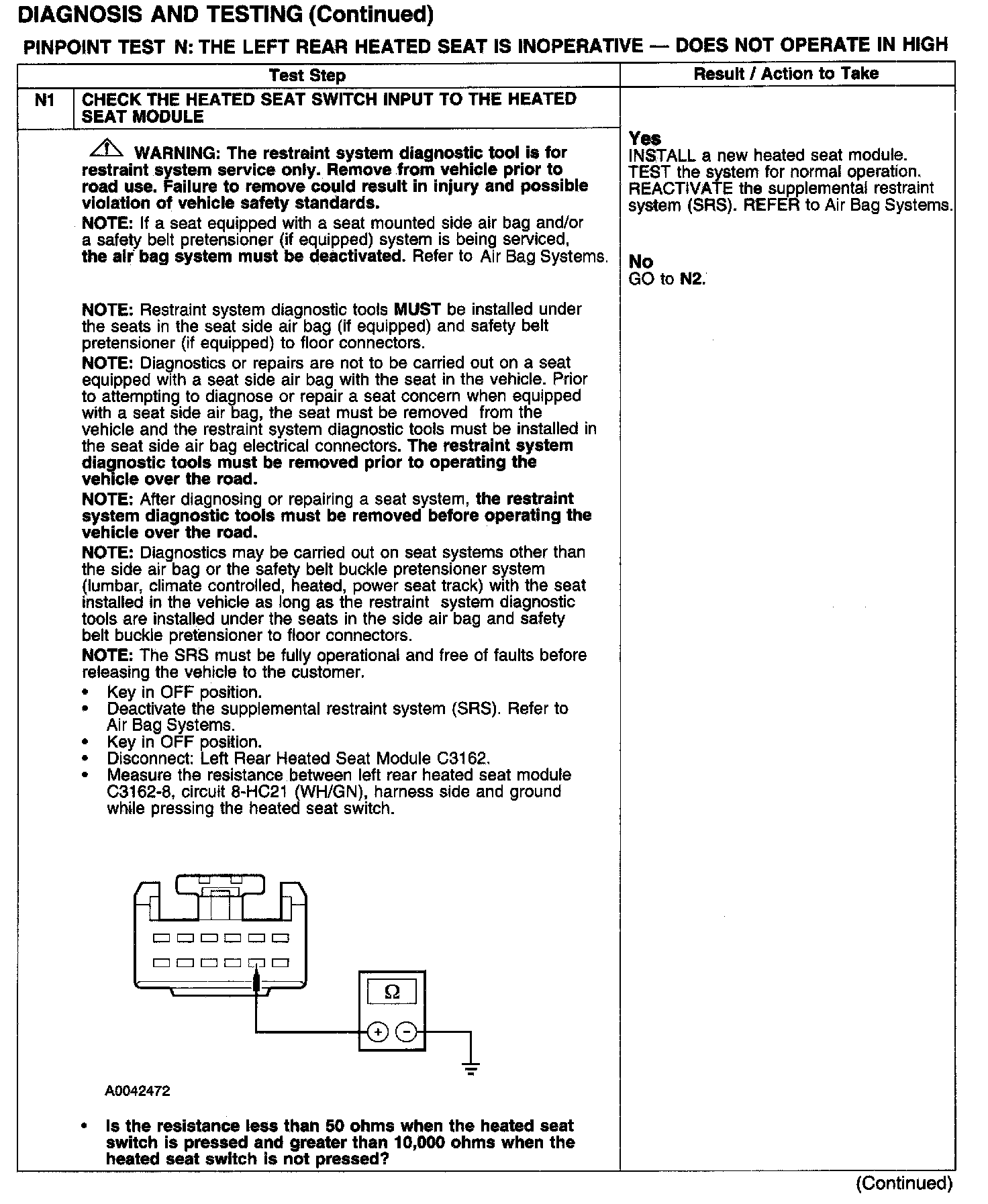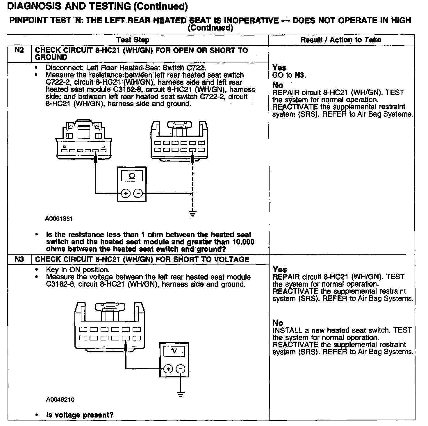 PINPOINT TEST N: THE LEFT REAR HEATED SEAT IS INOPERATIVE - DOES NOT OPERATE IN HIGHTest N1:
