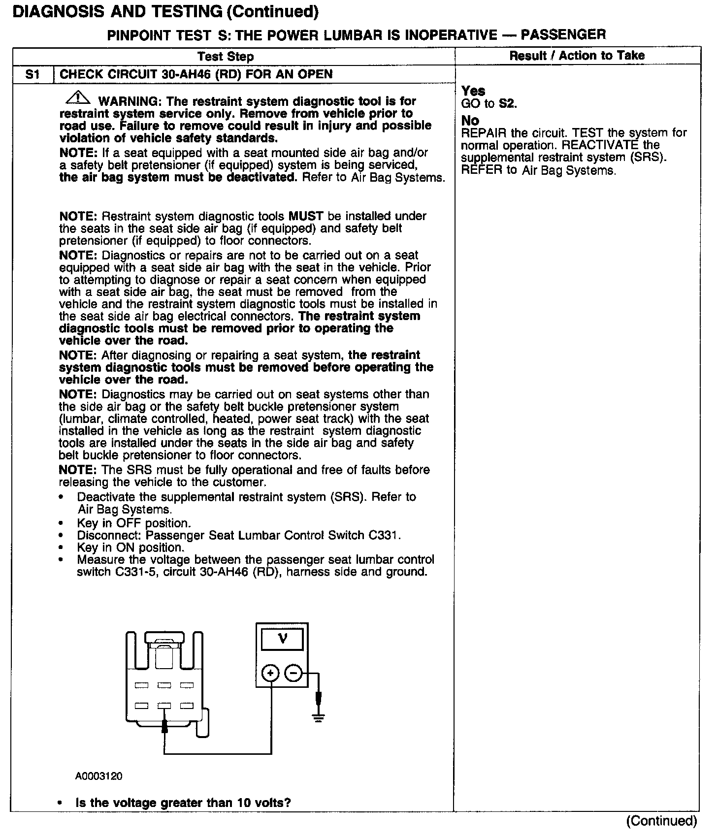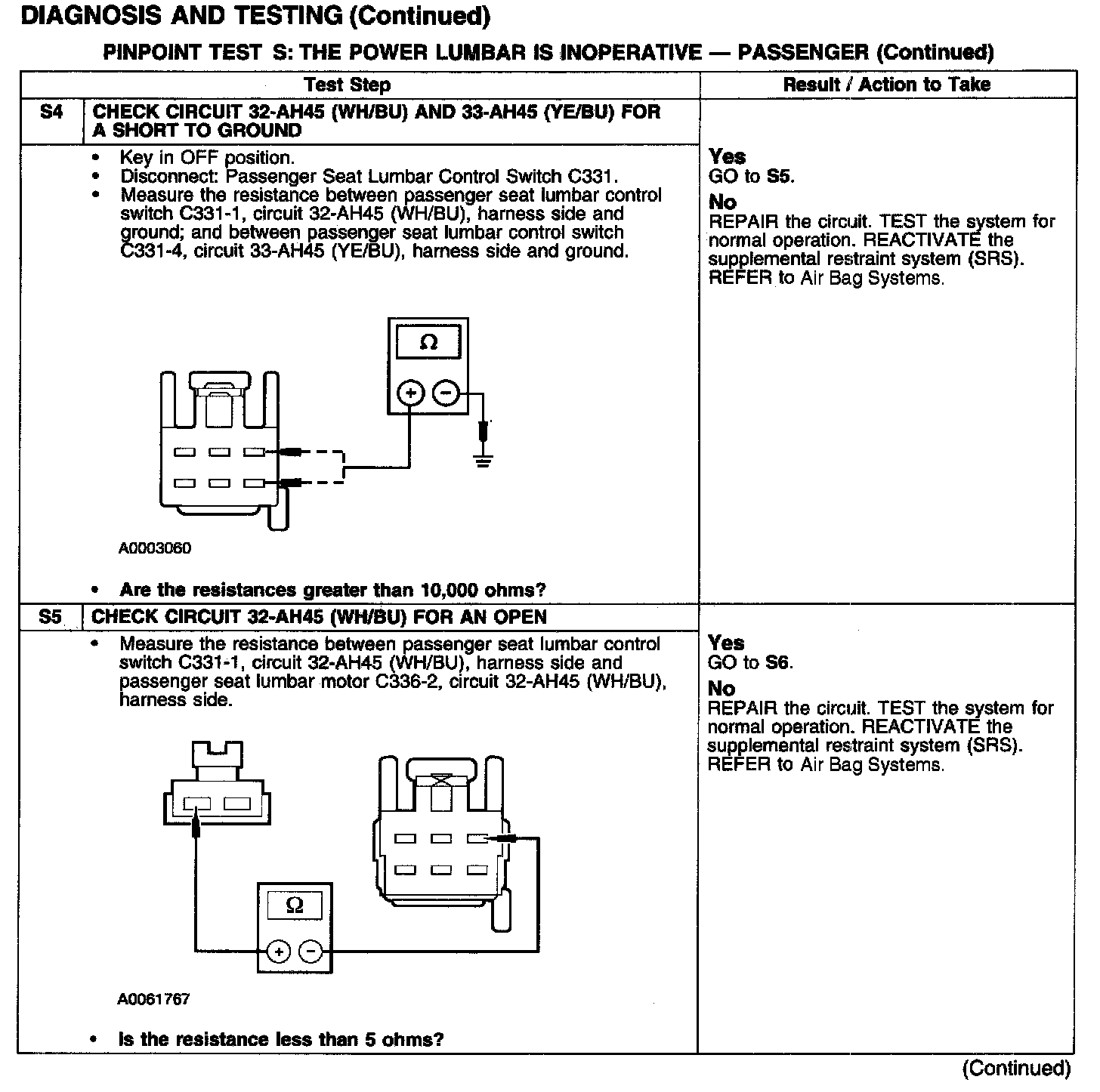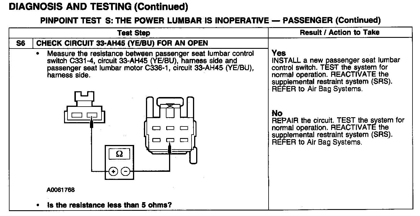 PINPOINT TEST S: THE POWER LUMBAR IS INOPERATIVE - PASSENGERTest S1: