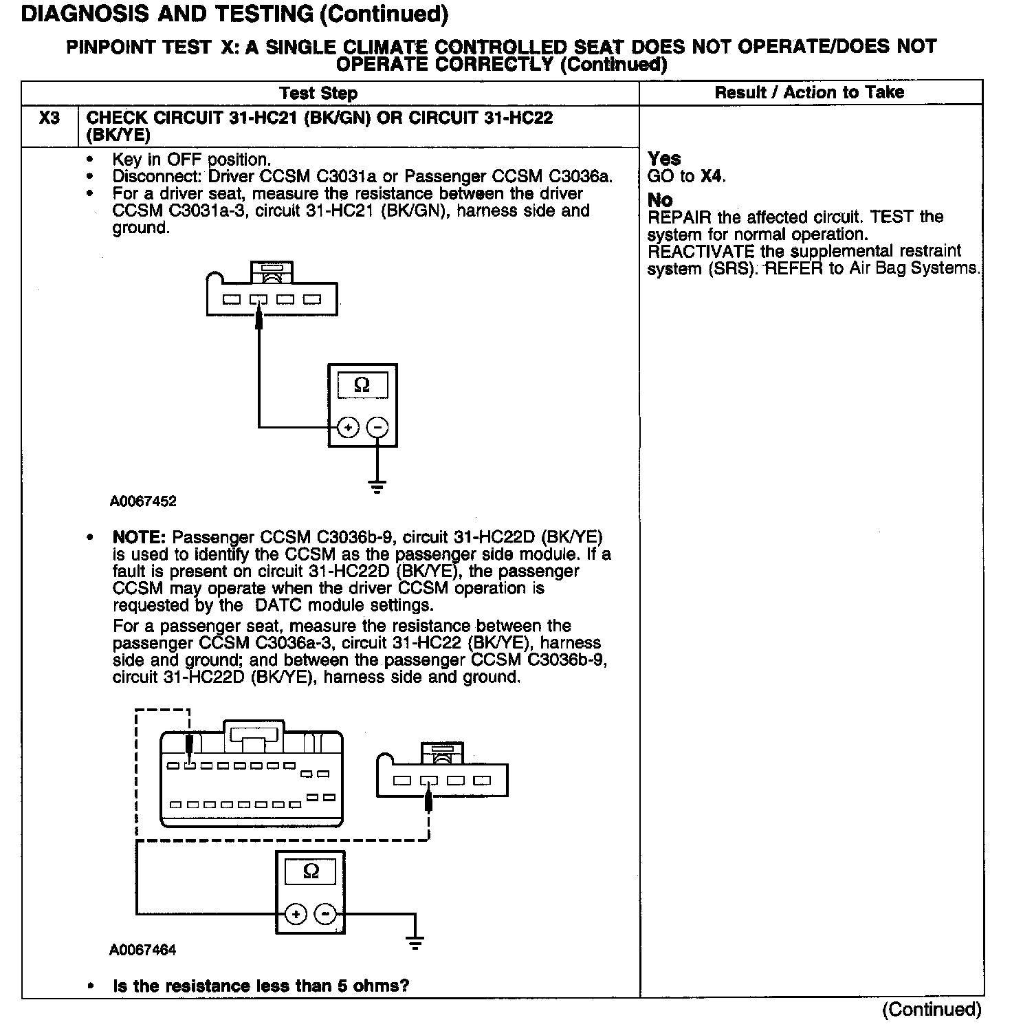 PINPOINT TEST X: A SINGLE CLIMATE CONTROLLED SEAT DOES NOT OPERATE/DOES NOT OPERATE CORRECTLYTest X1-X2: