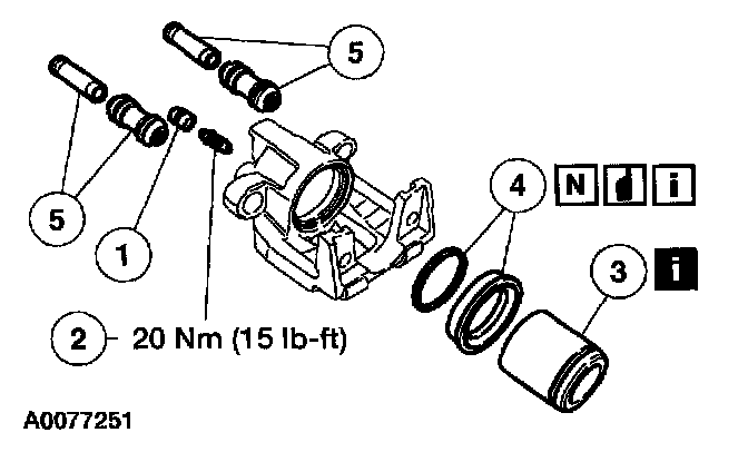 4. NOTE: Do not hone the piston bores. If the bores are excessively scored or corroded, install a new brake disc caliper.