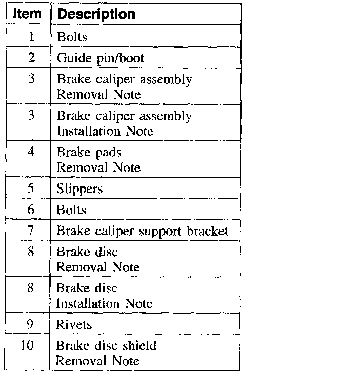 Front Disc Brake1. Remove the components in the order indicated in the table.