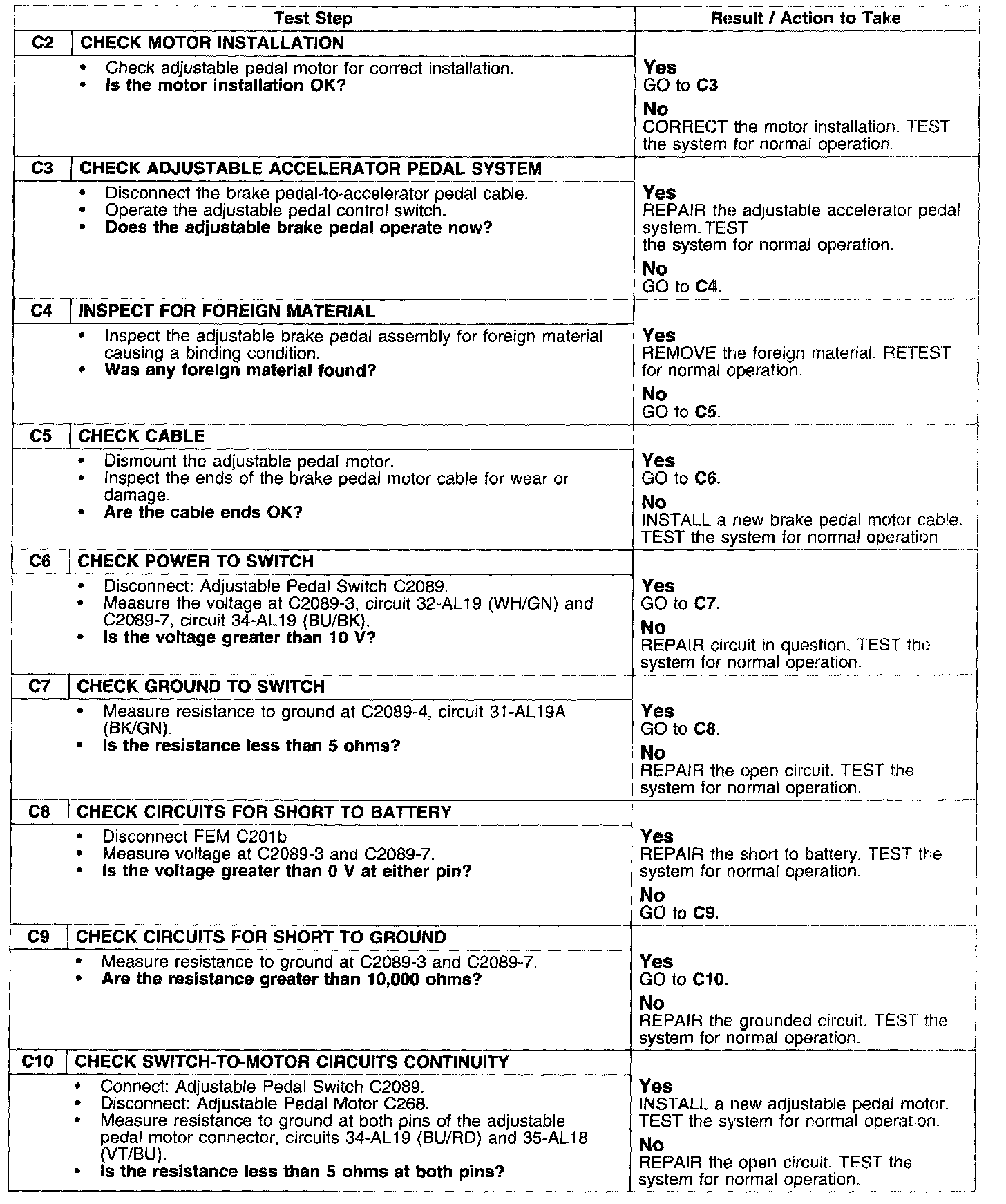 Pinpoint Test C: The Adjustable Pedal Does Not Operate