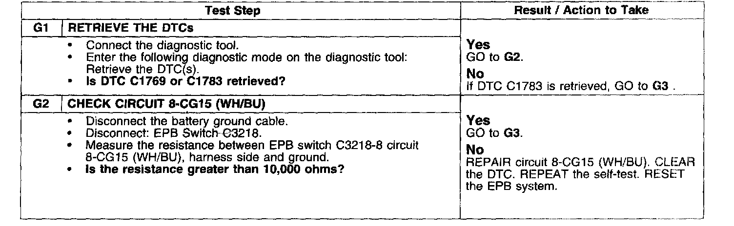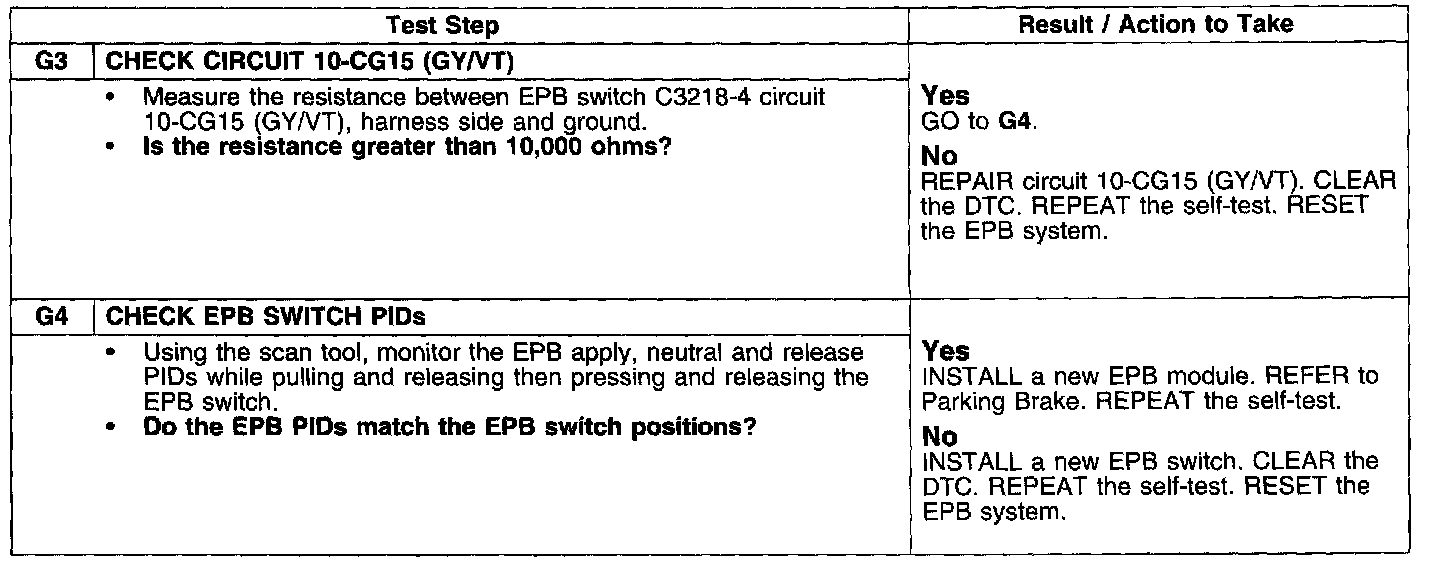 PINPOINT TEST G: DTC C1769/C1783: PARK BRAKE APPLY/RELEASE SWITCH SHORT TO GROUND