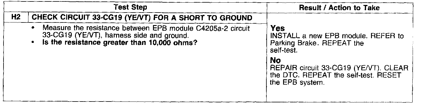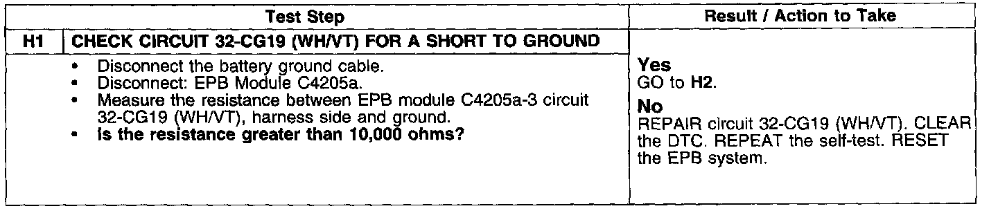 PINPOINT TEST H: C1784: EPB MOTOR OUTPUT CIRCUIT SHORT TO GROUND