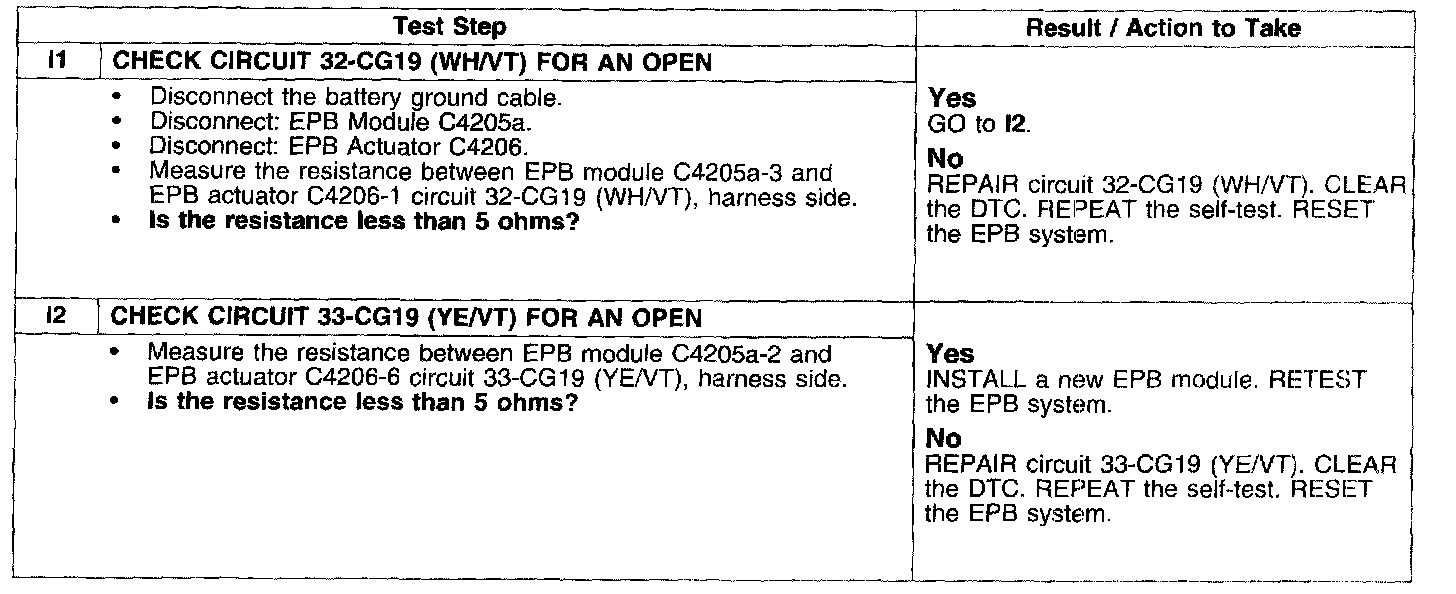 Pinpoint Test I: DTC C1785: EPB Motor Output Open Circuit