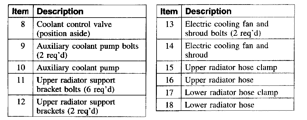 Radiator, Cooling Fan and Shroud1. Drain the cooling system.