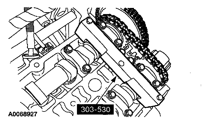 2. CAUTION: The camshaft holding tool should still be installed on the LH cylinder head.