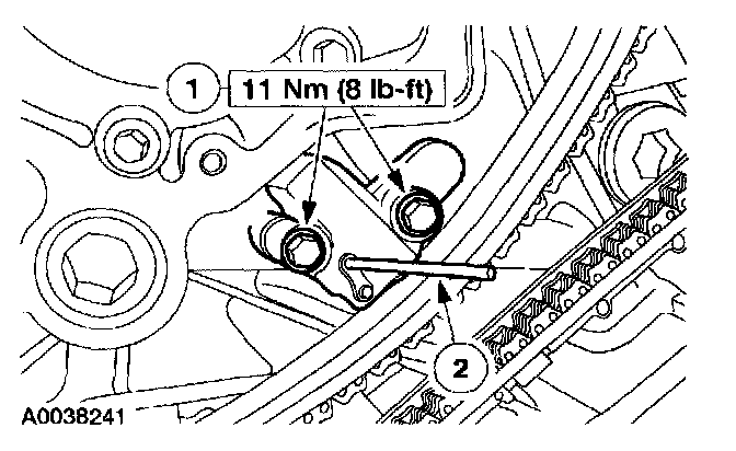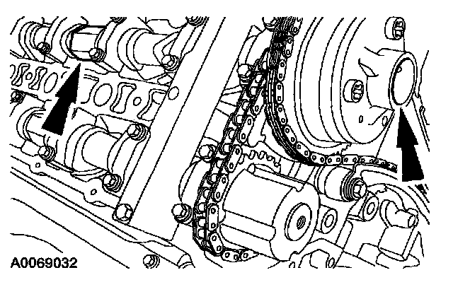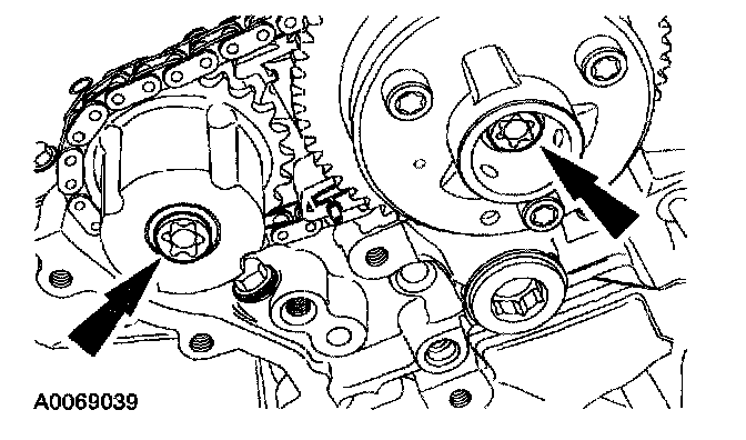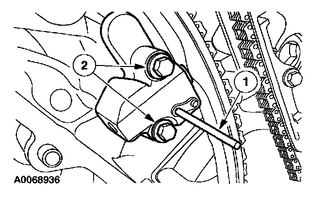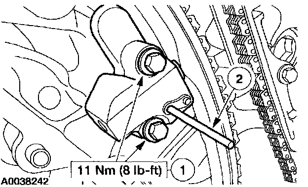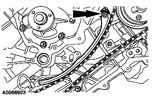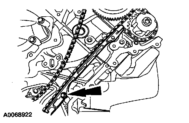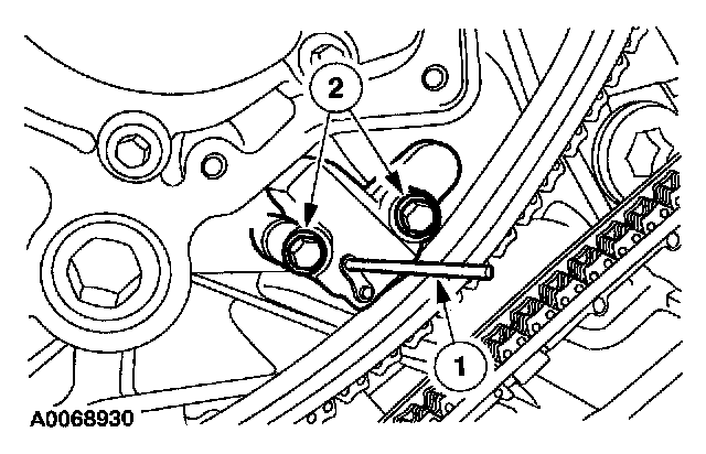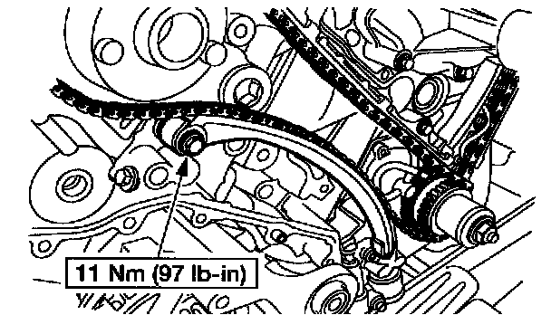 1. Collapse the LH secondary timing chain tensioner and install a pin to lock the piston.