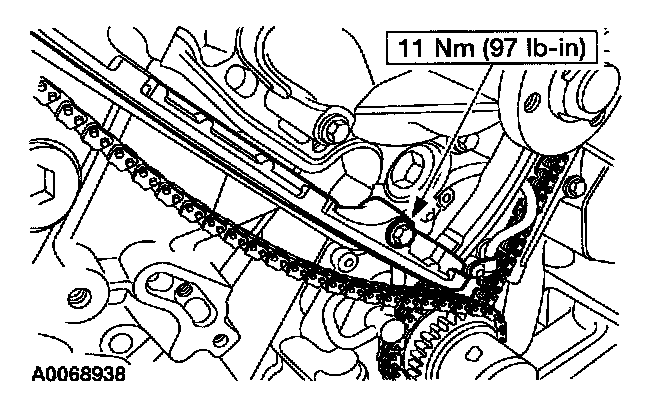 11. Install the RH timing chain tensioner arm.
