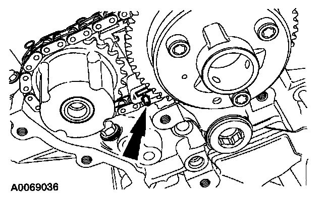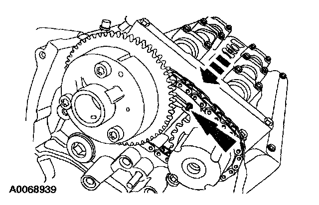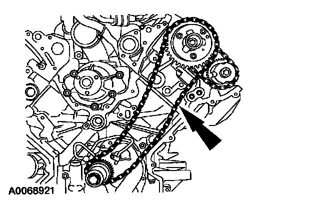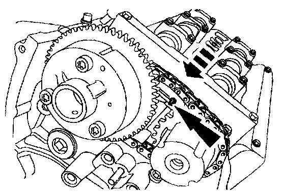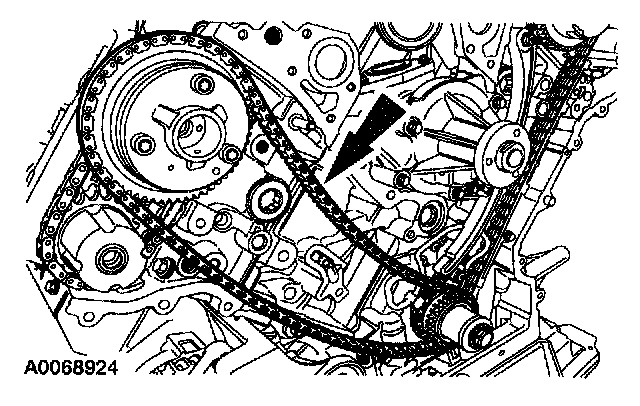 ^ Position the timing chain over the LH intake camshaft sprocket.