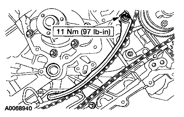 12. Install the RH timing chain tensioner.