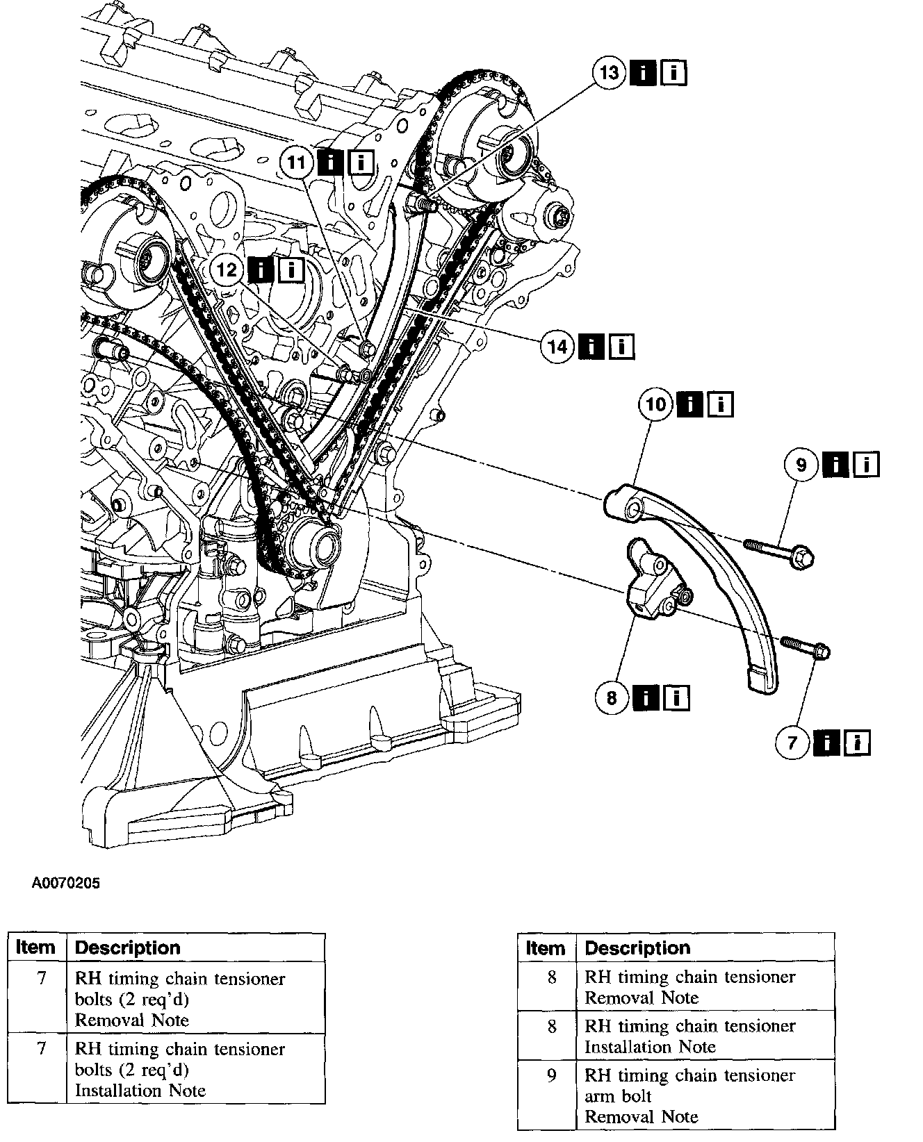 7. Remove the RH timing chain tensioner