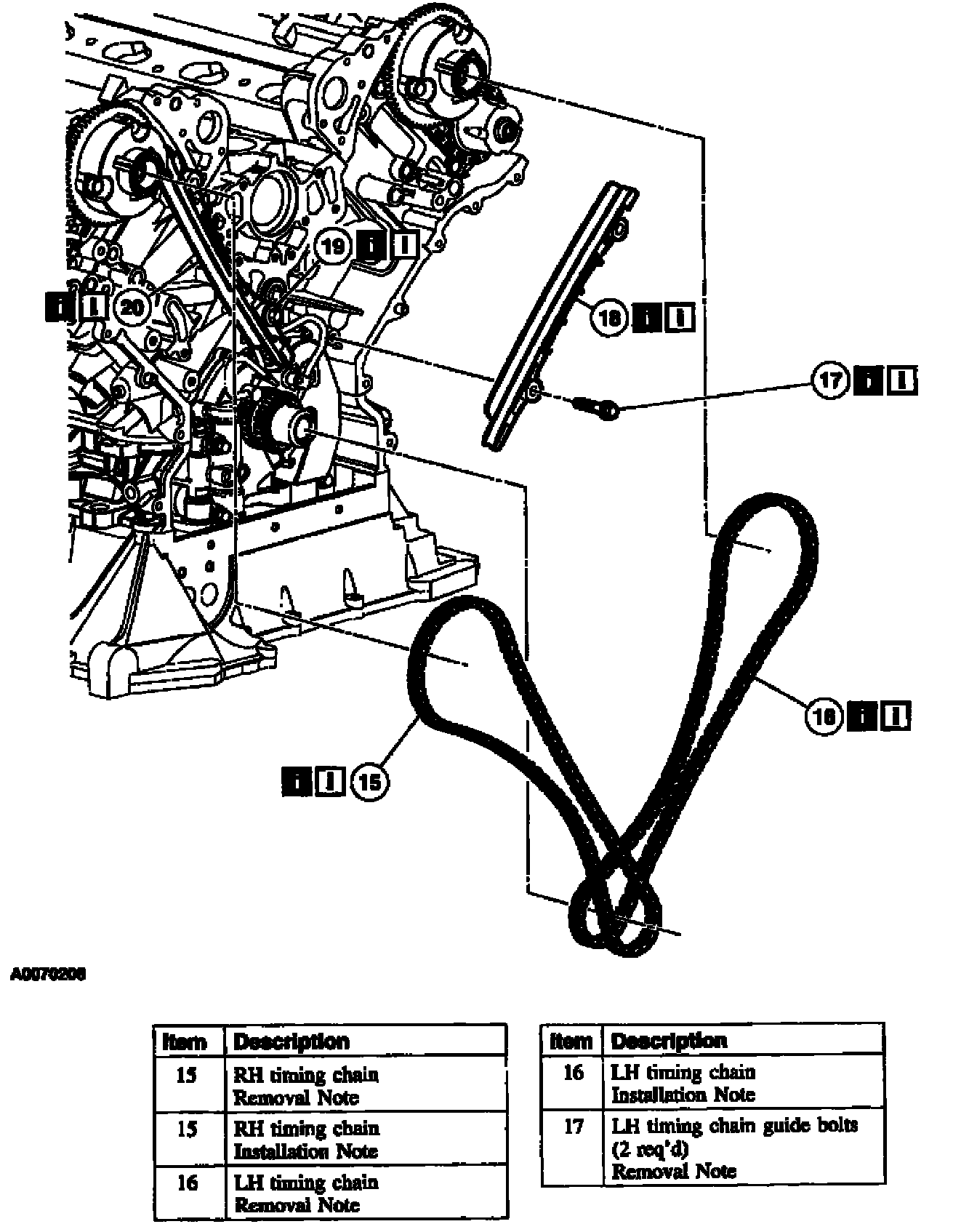 17. Remove the LH primary timing chain.