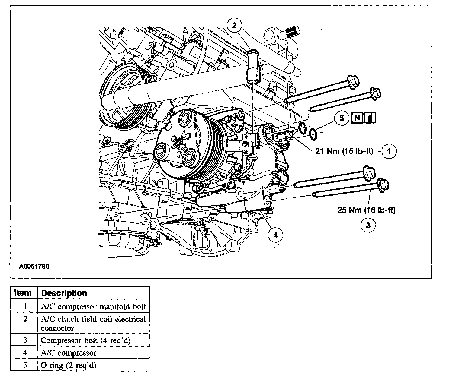 - New O-ring seals, lubricated in clean PAG oil, must be installed before reconnecting any A/C fitting that has been disconnected.